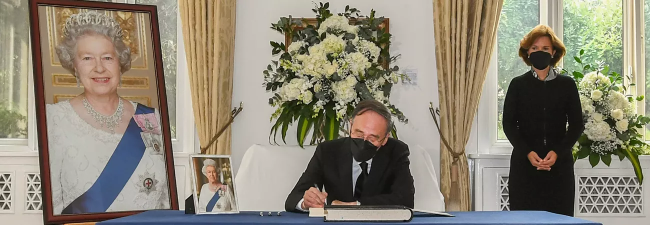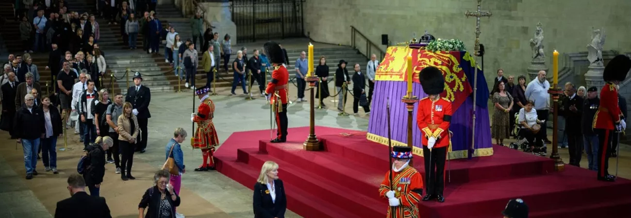 ملکہ ایلزیبتھ کے تابوت کی جانب بڑھنے والا شخ...