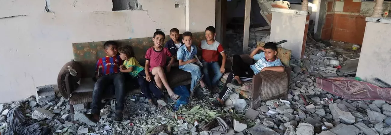 غزہ میں تنازع کے بعد بے گھر فلسطینی بچے