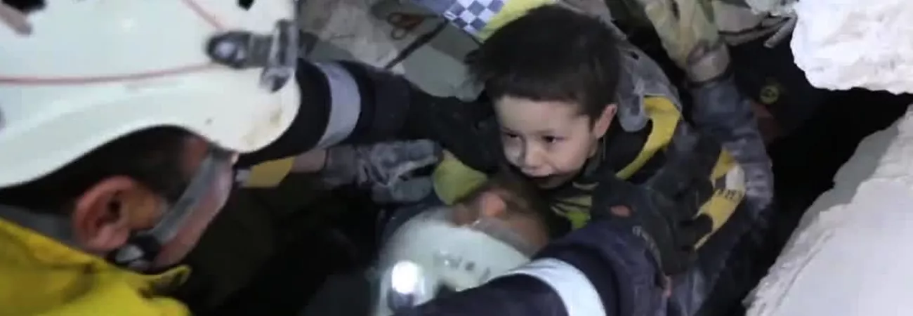 ملبے سے نکالا جانے والا شامی بچہ لوگوں کو دی...