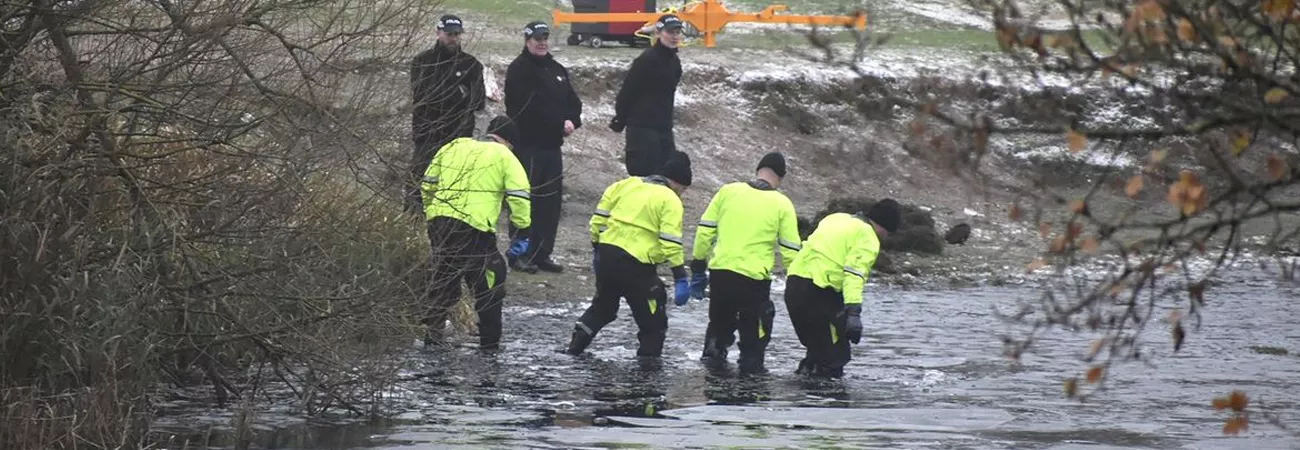 برطانیہ، برمنگھم کے قریب برفیلی جھیل میں گرن...