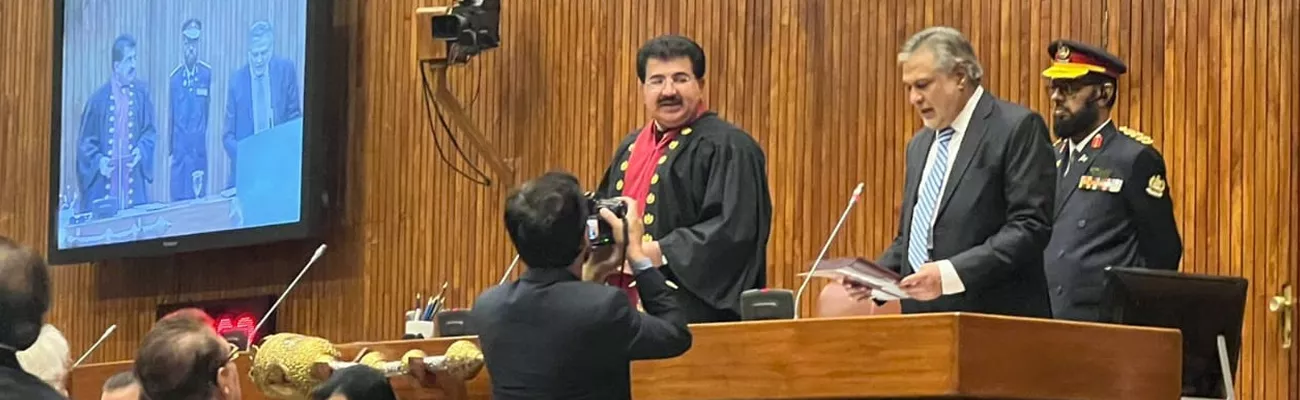 سینیٹراسحاق ڈار نے وزیرخزانہ کے عہدے کا حلف...