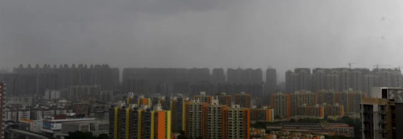 چین کے جنوبی صوبہ گوانگ ڈونگ کے شہر گوانگ ژو میں سمندری طوفان کا ایک منظر۔(شِنہوا)کے بعد آسمان
