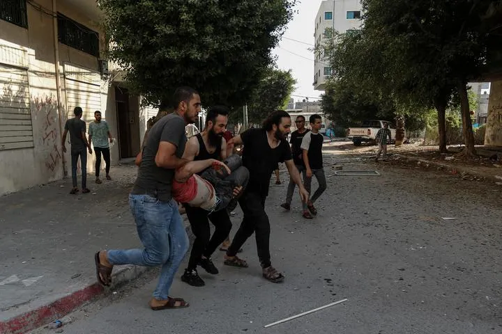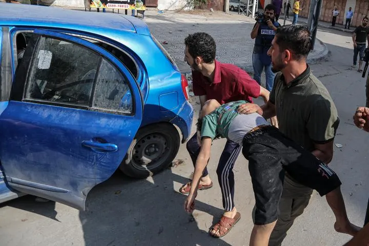 غزہ شہر میں اسرائیلی فضائی حملے میں زخمی ہونے والے ایک شخص کواسپتال منتقل کیا جارہا ہے۔(شِنہوا)
