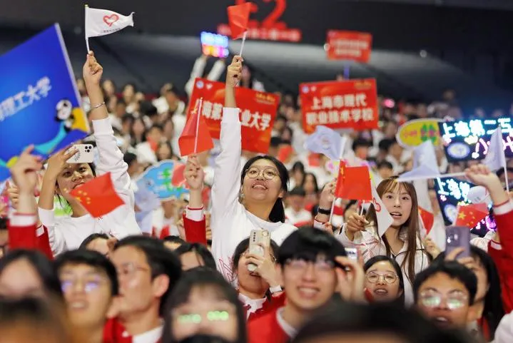 چین ، مشرقی شہر شنگھائی میں منعقدہ چھٹی چائنہ بین الاقوامی درآمدی نمائش کے رضاکاروں کی تقریب حلف برداری کا ایک منظر ۔ (شِنہوا)