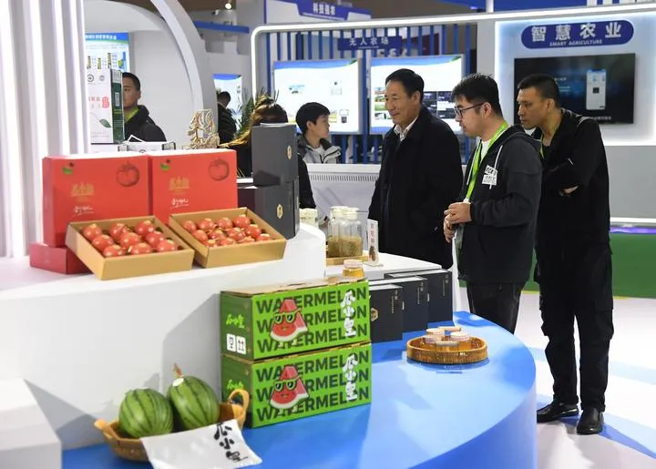 چین ، دارالحکومت بیجنگ میں عالمی زرعی خوراک اختراع کانفرنس 2023 کے دوران لوگ زرعی خوراک سائنس و ٹیکنالوجی پر مبنی نمائش کا دورہ کررہے ہیں۔ (شِںہوا)