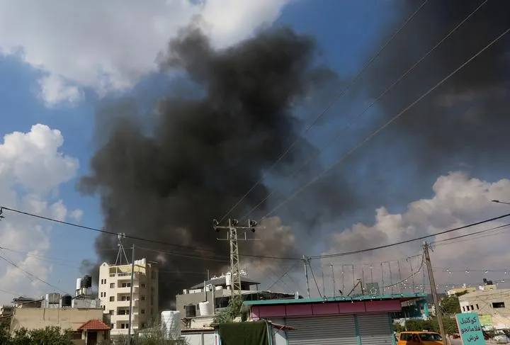 مغربی کنارے کے شہر نابلس کےگاؤں دیر شرف میں فلسطینیوں اور اسرائیلی آباد کاروں کے درمیان جھڑپوں کے دوران دھواں اٹھ رہا ہے۔(شِنہوا)