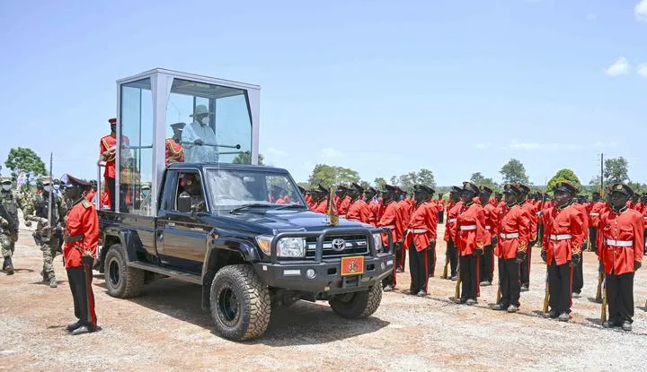 یوگنڈا کے صدر یوویری موسیوینی ملک کے ضلع کٹگم میں 61 ویں یوم آزادی کی سالگرہ کے موقع پر ہونے والی تقریب میں شریک ہیں۔(شِنہوا)
