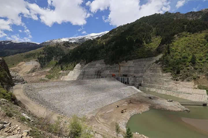 چین ، شمال مغربی صوبے شانشی میں ڈونگ ژوآنگ واٹرکنٹرول پروجیکٹ جنگ ہی ریور گرینڈ پل (بائیں ، نیچے) کا تعمیراتی مقام دیکھا جاسکتا ہے۔ (شِںہوا)