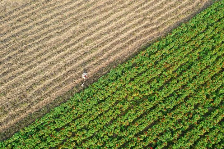 چین ، وسطی صوبے ہینان کی کاؤنٹی باؤفینگ کے قصبے لی ژوآنگ میں کسان مونگ پھلی کی  فصل کی کٹائی کررہے ہیں۔ (شِںہوا)