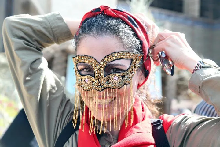 ایران، تہران میں ایک روایتی ثقافتی میلے کے دوران ایک خاتون ماسک  پہننے کی کوشش کر رہی ہے۔ (شِںہوا)