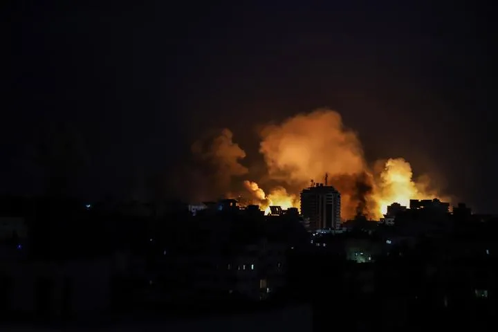 غزہ شہرپر اسرائیلی فضائی حملے کے بعد دھواں اٹھ رہا ہے۔(شِنہوا)