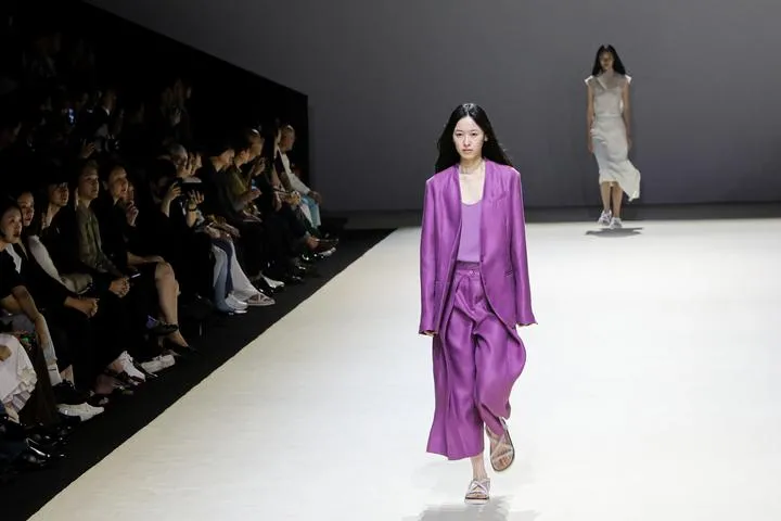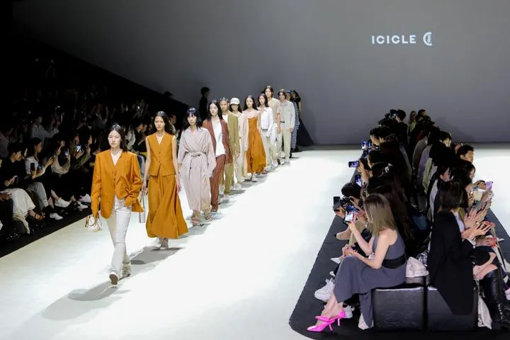 چین ، مشرقی شہر شنگھائی  میں ماڈلز 2024 بہار/ گرما  شنگھائی فیشن ویک  میں  ملبوسات پیش کررہی ہیں۔ (شِںہوا)