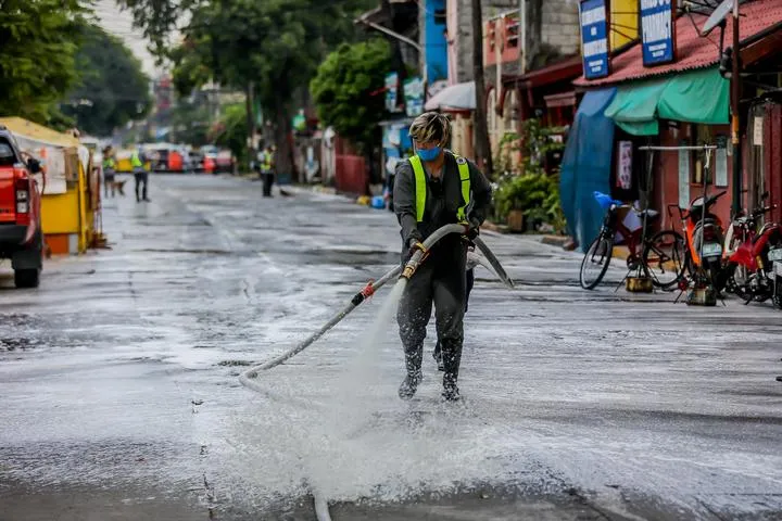 پشاور میں طبی عملے کا ایک رکن ایک علاقے میں مچھر مار اسپرے کررہا ہے ۔ (شِنہوا)