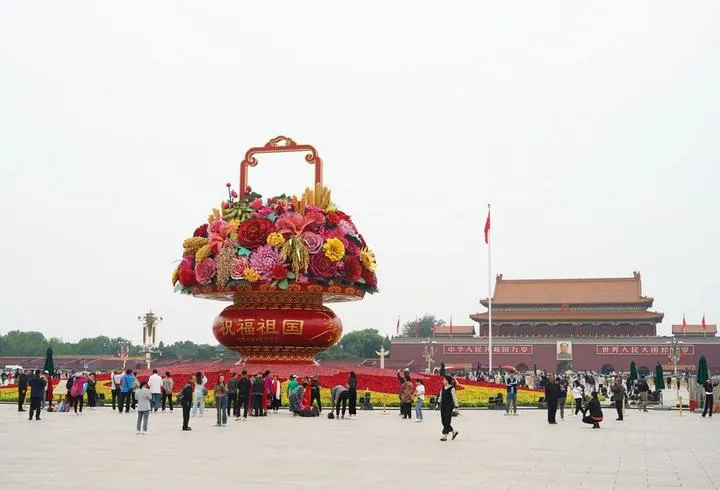 چین، دارالحکومت بیجنگ کے تیان آن من اسکوائر میں "پھولوں کی ٹوکری" دیکھی جاسکتی ہے۔ (شِںہوا)