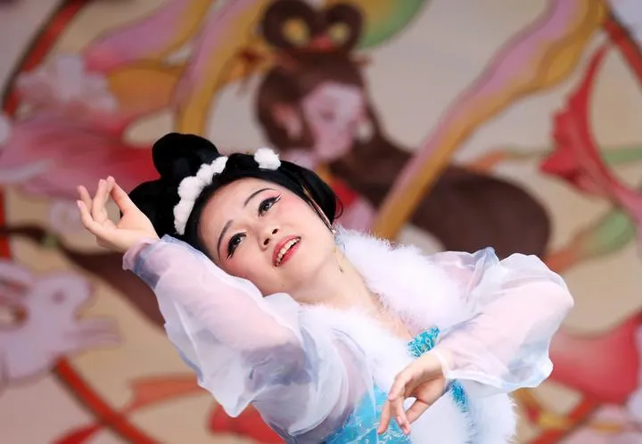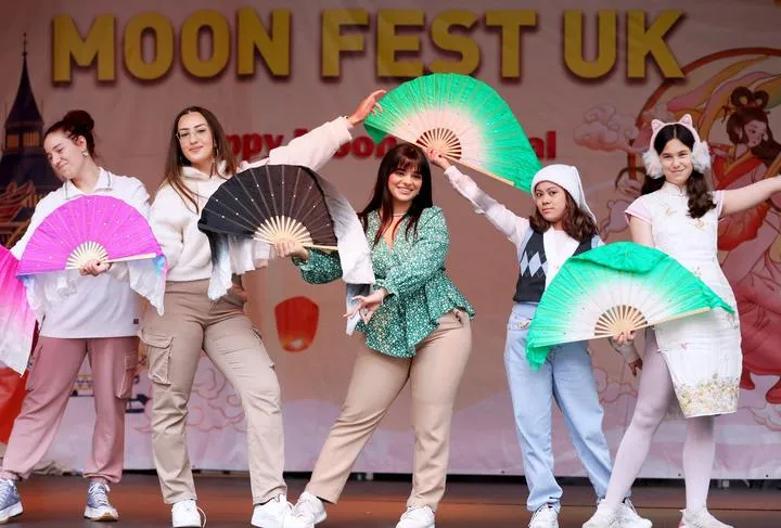 برطانیہ ، لندن میں چینی وسط خزاں تہوار کے جشن میں ایک اداکارہ فن کا مظاہرہ کررہی ہے۔(شِںہوا)