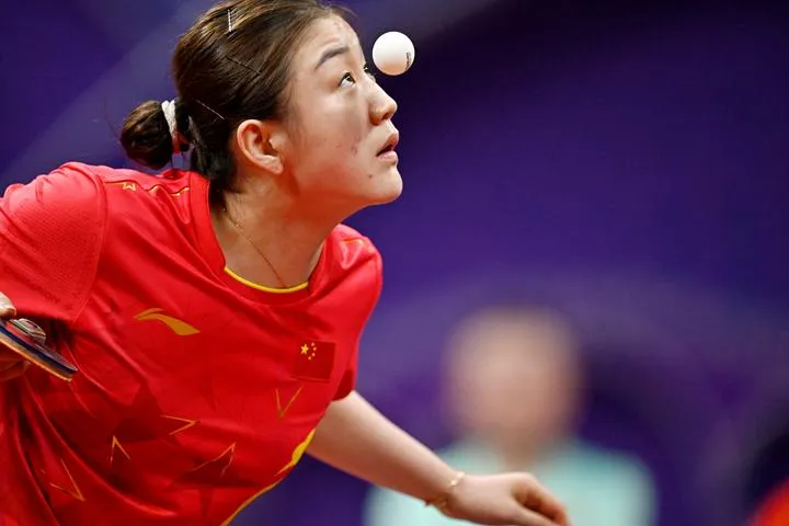 چین کے مشرقی صوبہ ژے جیانگ کے شہر ہانگژومیں 19ویں ایشین گیمز میں چین اور تھائی لینڈ کے درمیان خواتین کی ٹیم کے سیمی فائنل ٹیبل ٹینس میچ کے دوران چین کی چھن مینگ  مقابلہ کر رہی ہیں۔(شِنہوا)