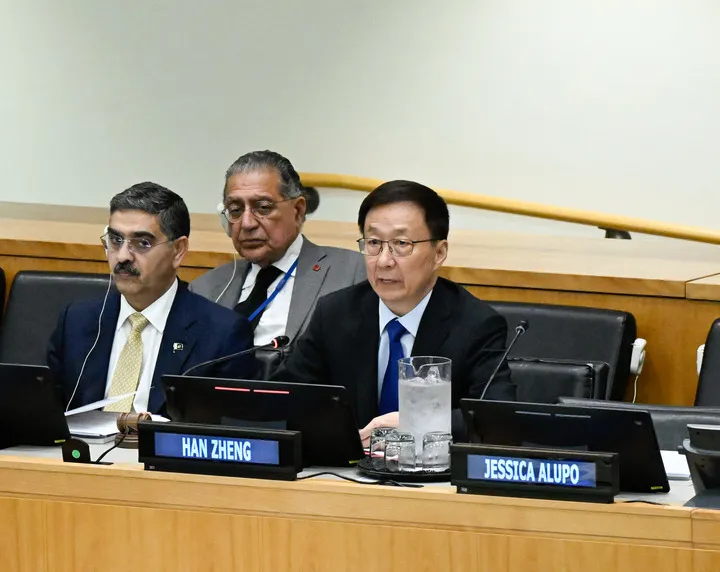 اقوام متحدہ کی جنرل اسمبلی (یو این جی اے ) کے اجلاس کے موقع پر چین کی میزبانی میں ہونے والے گلوبل ڈویلپمنٹ انیشیٹو کوآپریشن کے اعلیٰ سطحی اجلاس سے خطاب کرتے ہوئے چین کے نائب صدر ہان ژینگ نے کہا کہ چین 2030 کے پائیدار ترقی کے ایجنڈے پر عملدرآمد اور ہم نصیب ترقی کی عالمی برادری کی تعمیر کے لیے مضبوط طاقت جمع کرنے کے لیے تمام فریقین کے ساتھ مشترکہ کوششیں کرنے کا خواہاں ہے۔