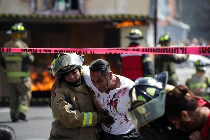 میکسیکو کے دارالحکومت میکسیکوشہر میں لوگ زلزلے سےبچاو کے لیے دوسری قومی مشق 2023 میں حصہ لے رہے ہیں۔(شِنہوا)