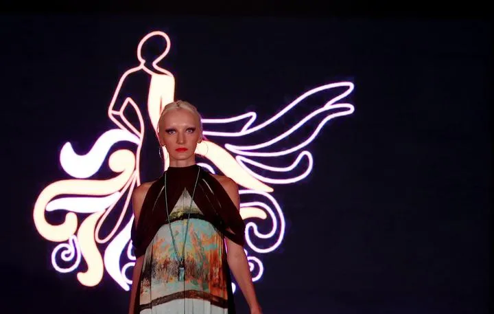 برطانیہ ، لندن میں منعقدہ لندن فیشن ویک میں ایک ماڈل ڈیزائنر تاتیانا شبیلنک کے تیار کردہ ملبوسات پیش کررہی ہے۔ (شِنہوا)