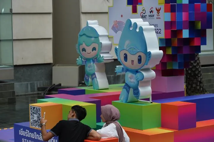 تھائی لینڈ، بنکاک میں 19 ویں ہانگ ژو ایشیائی کھیلوں کے میسکوٹ کے سامنے لوگ تصاویر بنارہے ہیں ۔(شِنہوا)
