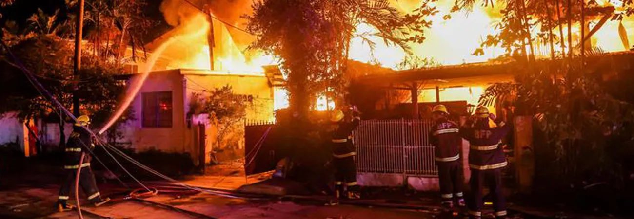 فلپائن کے شہرکوئزون میں آگ بجھانے والا عملہ ایک گھر میں لگی آگ پر قابو پانے کی کوشش کر رہا ہے۔(شِنہوا)