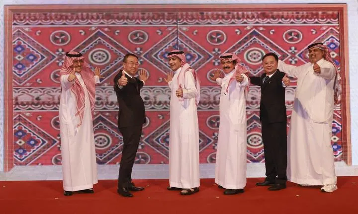 سعودی عرب، ریاض میں بینک آف چائنہ کی شاخ کی افتتاحی تقریب میں شریک  مہمانوں کا تصاویر کے لئے ایک انداز ۔ (شِنہوا)
