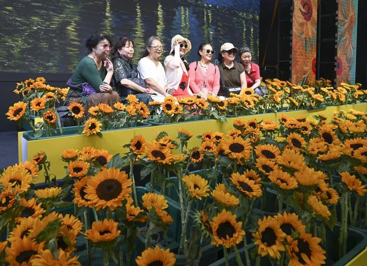 چین، دارالحکومت بیجنگ کے شوگانگ پارک میں منعقدہ  2023چائنہ بین الاقوامی میلہ برائے تجارتی خدمات  میں ثقافت وسیاحت خدمات کے نمائشی علاقے میں سیاحوں کا تصاویر کے انداز ۔ (شِنہوا)