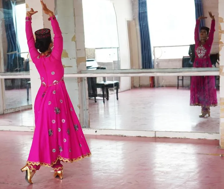 چین، شمال مغربی سنکیانگ ویغور خوداختیار خطے میں ٹاشکورگان تاجک خود اختیار کاؤنٹی میں پامیر سیاحتی علاقے کے صارف خدمات مرکز پر فن کا مظاہرہ کرنے  سےقبل مقامی گانے او رقص گروپ کی ایک رکن تیاری کررہی ہے ۔ (شِنہوا)