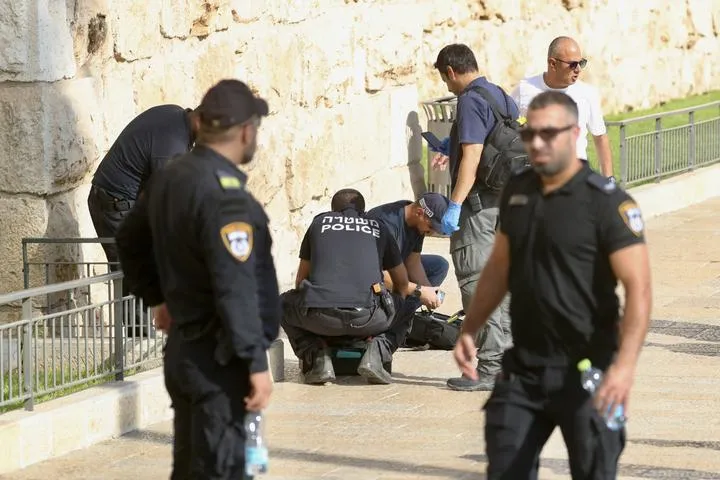 مشرقی یروشلم کے قدیم شہرمیں ایک فلسطینی نوجوان کی جانب سے چھرا گھونپنے کے حملے کے مقام پر اسرائیلی پولیس افسران جمع ہیں ،حملے میں دو افراد زخمی ہوئے۔(شِنہوا)
