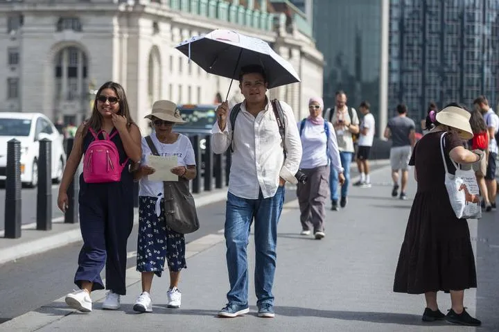 برطانیہ کےشہرلندن میں ویسٹ منسٹرپل پرلوگ گرمی کی لہر کے باعث دھوپ سے بچاؤ کرتے ہوئے نظر آ رہےہیں۔(شِنہوا)