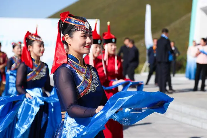 چین، شمالی اندرون منگولیا خوداختیار خطے کی ہنگ گان لیگ کے علاقے آرشان میں منعقدہ 2023 چائنہ (آرشان)  سیاحتی کانفرنس کی افتتاحی تقریب سے قبل استقبالیہ تقریب کا ایک منظر۔ (شِنہوا)