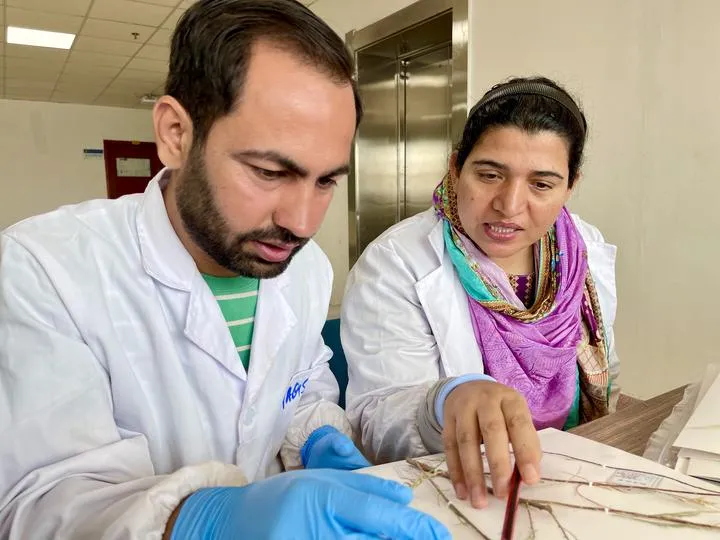 چین، شمال مغربی صوبہ گانسو کی جامعہ لان ژو میں پوسٹ ڈاکٹریٹ کی پاکستانی طالبہ آصفہ بتول کو دیکھا جاسکتا ہے۔ (شِنہوا)