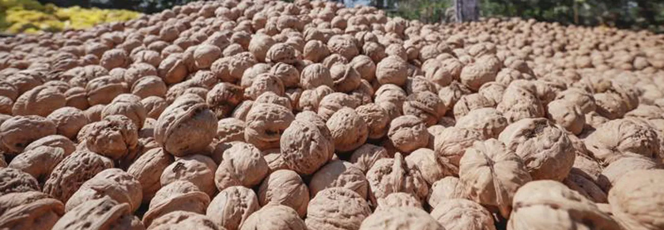 چین کے شمالی صوبہ ہیبی کےشہرژون ہوا کے ڈونگ جیوژائی ٹاؤن میں کسان اخروٹ خشک کررہے ہیں۔(شِنہوا)