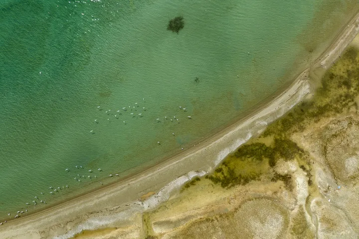 چین، شمال مغربی سنکیانگ ویغور خود اختیارخطے کی کاؤنٹی یولی کے دیہات بخش مالی میں آرکن رحیم اپنے کپاس کے کھیت کے قریب ایک کھائی میں بطخوں کی گنتی کر رہا ہے۔  (شِنہوا)