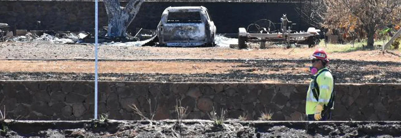 امریکی ریاست ہوائی کے جزیرہ ماوئی میں آتشزدگی سے تباہ حال لاہائنا ٹاون میں ایک امدادی کارکن صورتحال کا جائزہ لے رہا ہے جہاں جنگلات میں لگنے والی آگ سے مرنے والوں کی تعداد 115 ہو گئی ہے۔(شِنہوا)
