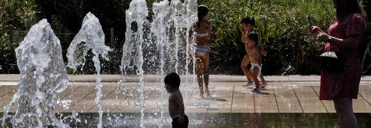 فرانس کے جنوبی علاقے نیس میں گرمی کی لہر کے دوران بچے فوارے سے ٹھنڈک حاصل کر رہے ہیں۔(شِنہوا)