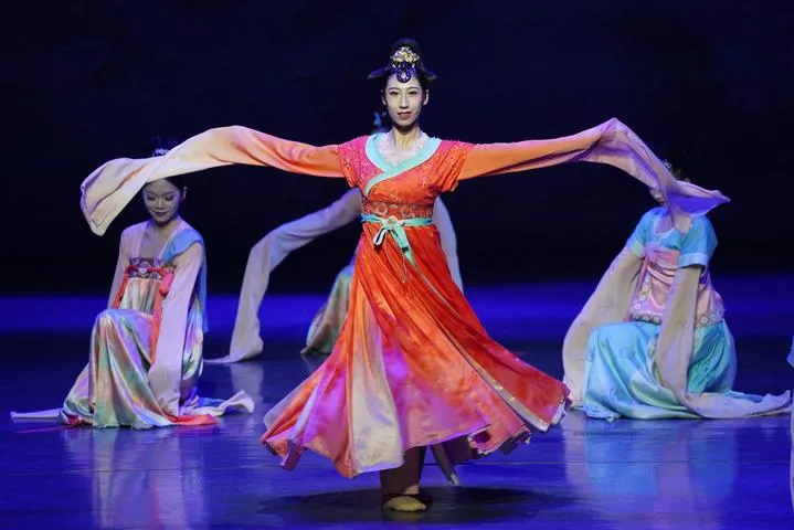 چین، شمال مغربی صوبہ گانسو کے شہر ڈن ہوانگ میں فنکارہ " ڈن ہوانگ کے قدیم سُر" پر فن کا مظاہرہ کررہی ہے۔ (شِںہوا)