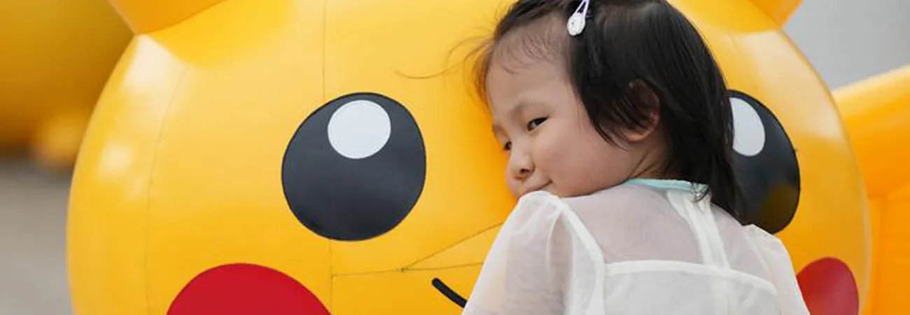 جاپان ، یوکوہاما کے مناٹومیرائی  میں ایک لڑکی  ہوا سے بھرے پیکاچو کو گلے لگارہی ہے۔(شِنہوا)