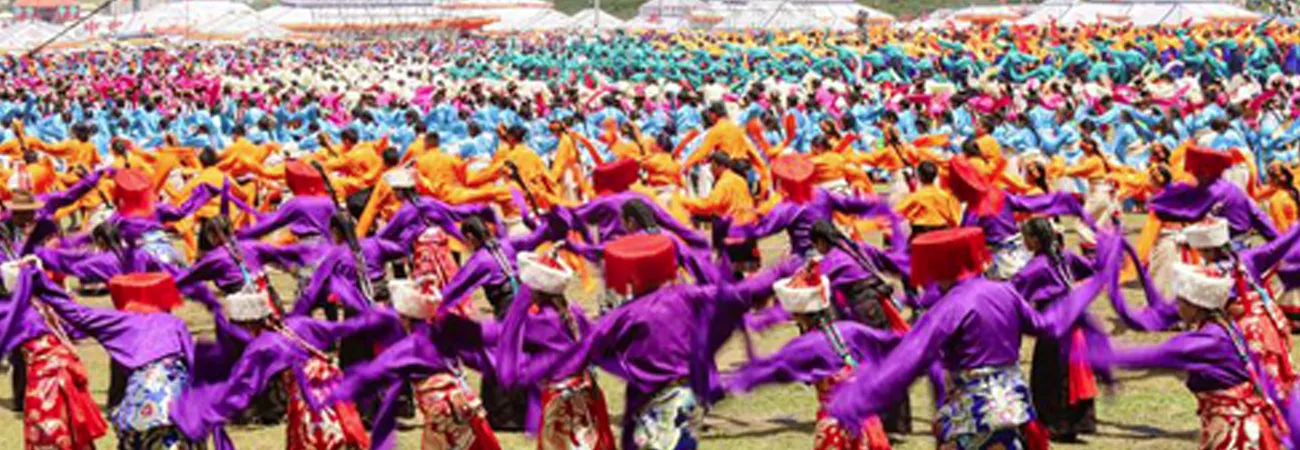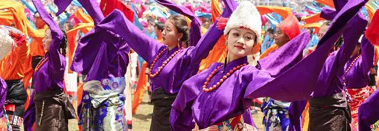 چین، شمال مغربی صوبہ گانسو کے شہر ہی ژو میں گان نان تبتی خوداختیار پریفیکچر کے قیام کے 70 ویں یوم تاسیس کے جشن کا ایک منظر۔ (شِنہوا)