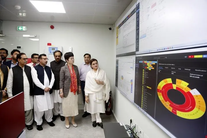 اسلام آباد میں مہمان سرکاری خبررساں ادارے ایسوسی ایٹڈ پریس آف پاکستان کے ڈیٹا سینٹر کا دورہ کررہے ہیں۔ (شِنہوا)