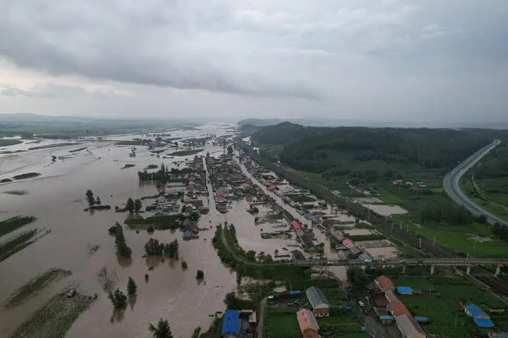 چین، شمال مشرقی صوبہ جیلن کے شہر شولان کے قصبے چھی لی میں سیلاب زدہ علاقہ دیکھا جاسکتا ہے۔ (شِنہوا)