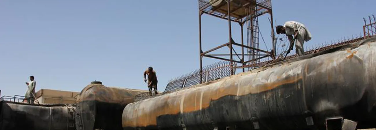 افغانستان کے صوبہ بلخ کے دارالحکومت مزار شریف میں آتشزدگی سے متاثرہ تیل کے ڈپو کا منظر۔(شِنہوا)