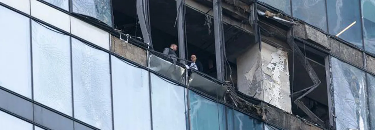 روس کے دارالحکومت ماسکو میں یوکرینی ڈرون حملےسے متاثر ہونے والی عمارت دیکھی جا سکتی ہے۔(شِنہوا)