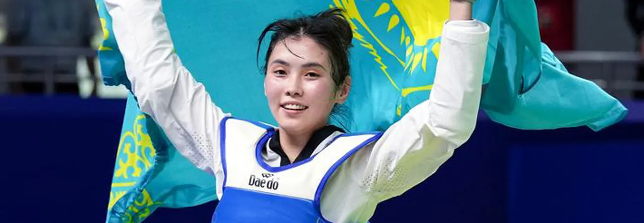چین ، جنوب مغربی صوبے سیچھوان کے شہر چھنگ دو میں جاری 31ویں ایف آئی ایس یو سمر ورلڈ یونیورسٹی گیمز میں قازقستان کی ریتا باکیشیوا تائیکوانڈو میں خواتین کے 46 کلوگرام کے فائنل میں کامیابی کا جشن منارہی ہے۔ (شِںہوا)