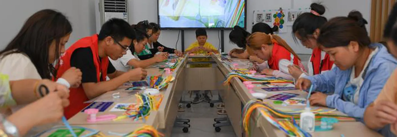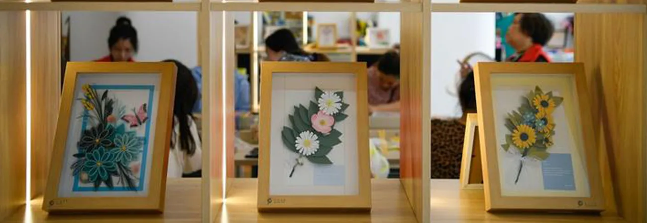 چین، جنوب مغربی صوبے سیچھوان کے شہر چھنگ ڈو کے ضلع وین جیانگ کی ثقافتی اور تخلیقی ورکشاپ میں میں مقامی شہری  کاغذ سے فن پارے تخلیق کرنا سیکھ رہے ہیں۔ (شِنہوا)