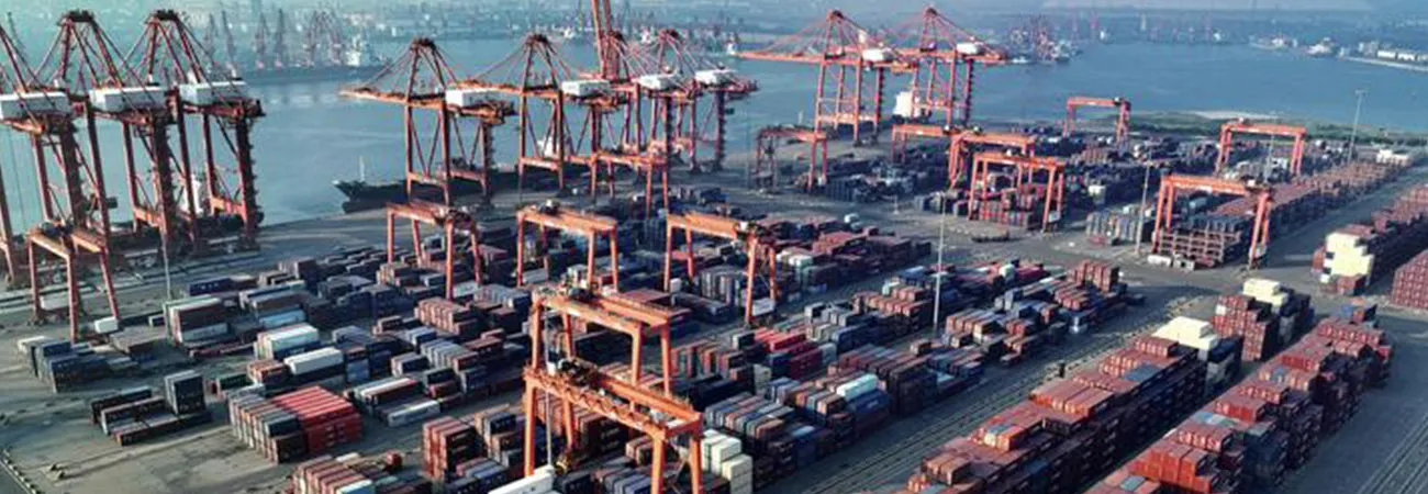 چین کےشمالی صوبے ہیبی کے شہر تانگشان میں تانگشان بندرگاہ کے ایک کنٹینر ٹرمینل کا منظر جہاں سال کی پہلی ششماہی میں غیرملکی تجارتی سامان کی ترسیل میں گزشتہ سال کی نسبت 28.8 فیصد اضافہ ہوا۔(شِنہوا)
