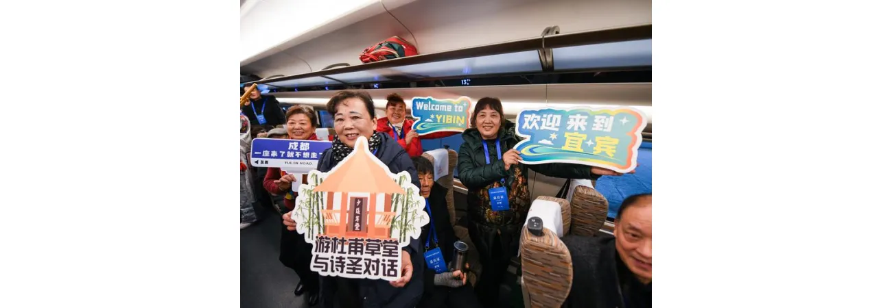 چین کےجنوب مغربی صوبے سیچھوان میں چھنگ دو-ژیگونگ-یی بن ہائی اسپیڈ ریلوے آپریشن کی پہلی ٹرین جی 8738 کی روانگی کے موقع پر مسافر تصاویر کھنچواتے ہوئے۔(شِنہوا)