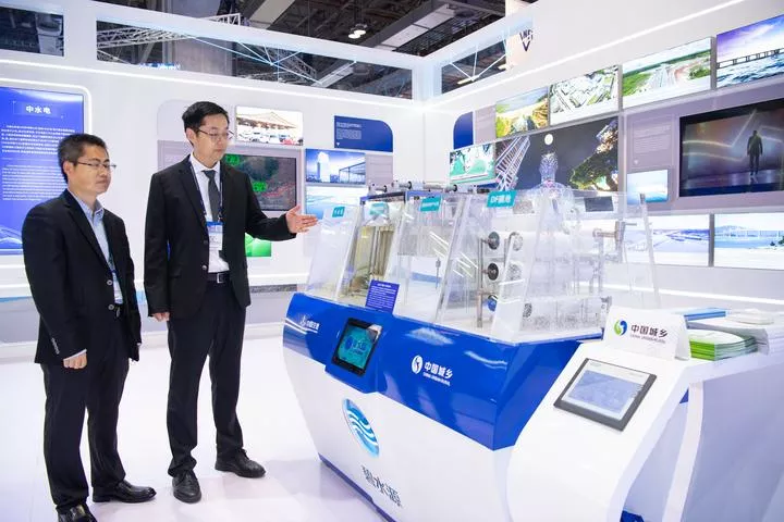 چین، جنوبی مکاؤ میں منعقدہ 14 ویں بین الاقوامی بنیادی ڈھانچہ سرمایہ کاری اور تعمیراتی فورم میں لوگ چائنہ اربن اینڈ رورل ہولڈنگ گروپ کمپنی لمیٹڈ کے نمائشی علاقے کا دورہ کررہے ہیں۔ (شِںہوا)