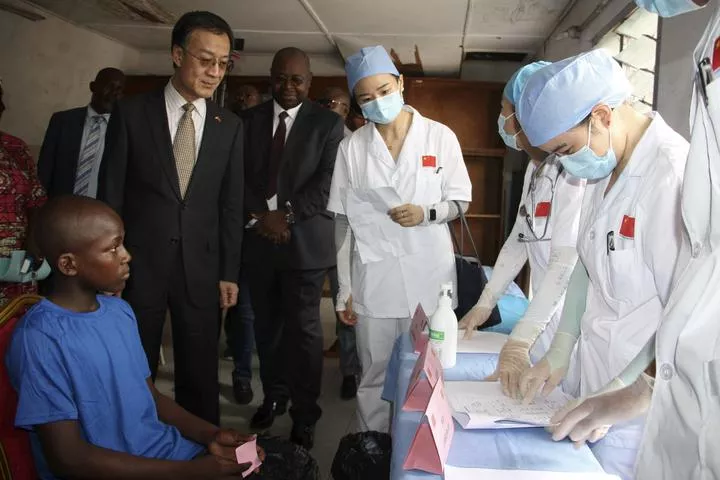 جمہوریہ کانگو کے دارالحکومت برازاویل میں کانگو آنے والی 29 ویں چینی طبی ٹیم کے ڈاکٹرز لے پالک بچوں کے مرکز میں بچوں کا معائنہ کررہے ہیں۔ (شِںہوا)