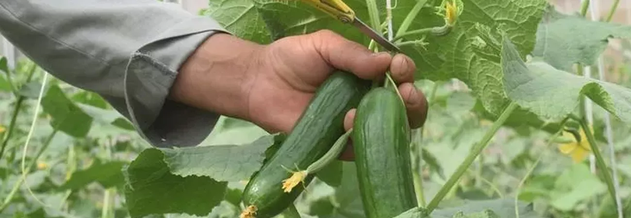 افغانستان، جوزجان کے کھیت میں تازہ کھیرے دیکھے جاسکتے ہیں۔ (شِنہوا)
